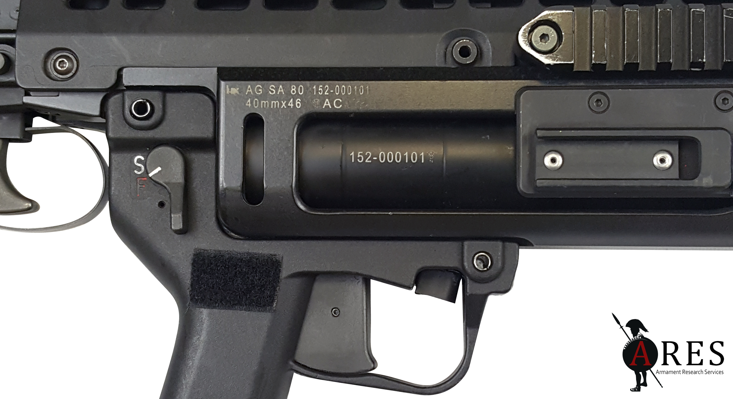 In 1995, a decade after the SA80 entered service, Heckler & Koch offered British forces a variant of their AG36 UGL known as AG SA 80. This design has proved to be a popular replacement for the legacy weapons of several nations, including the United States, where it is known as the M320. The AG SA80 was adopted and received the designation L17A2, the parallel A1 variant being an accessory for the L119A1 (Diemaco C8 SFW). The weapon is aluminium in construction with a polymer mount that replaces the host rifle’s handguard. This mount includes a hinged top cover to access the weapon’s gas parts. This includes an integral folding tangent sight mounted on the left side and graduated from 50 m to 350 m. A Picatinny rail strip opposite allows the mounting of the Laser/Light Module (LLM). These also feature a polymer bracket to accommodate the activation switch. The barrel has 6 grooves with a 1:1200 twist. The AG SA 80 features a double-action trigger; the other models are single-action or cock-on close. Comparable with most other 40 x 46SR mm weapons, the L17A2 has an effective range of some 400 m, and develops a muzzle velocity of 76 m/s. The example seen in the video accompanying this post is a developmental iteration of the L17A2 marked simply ‘SA80 GL’. It is installed on an L85A1 rifle, which is not a configuration that ever saw service.