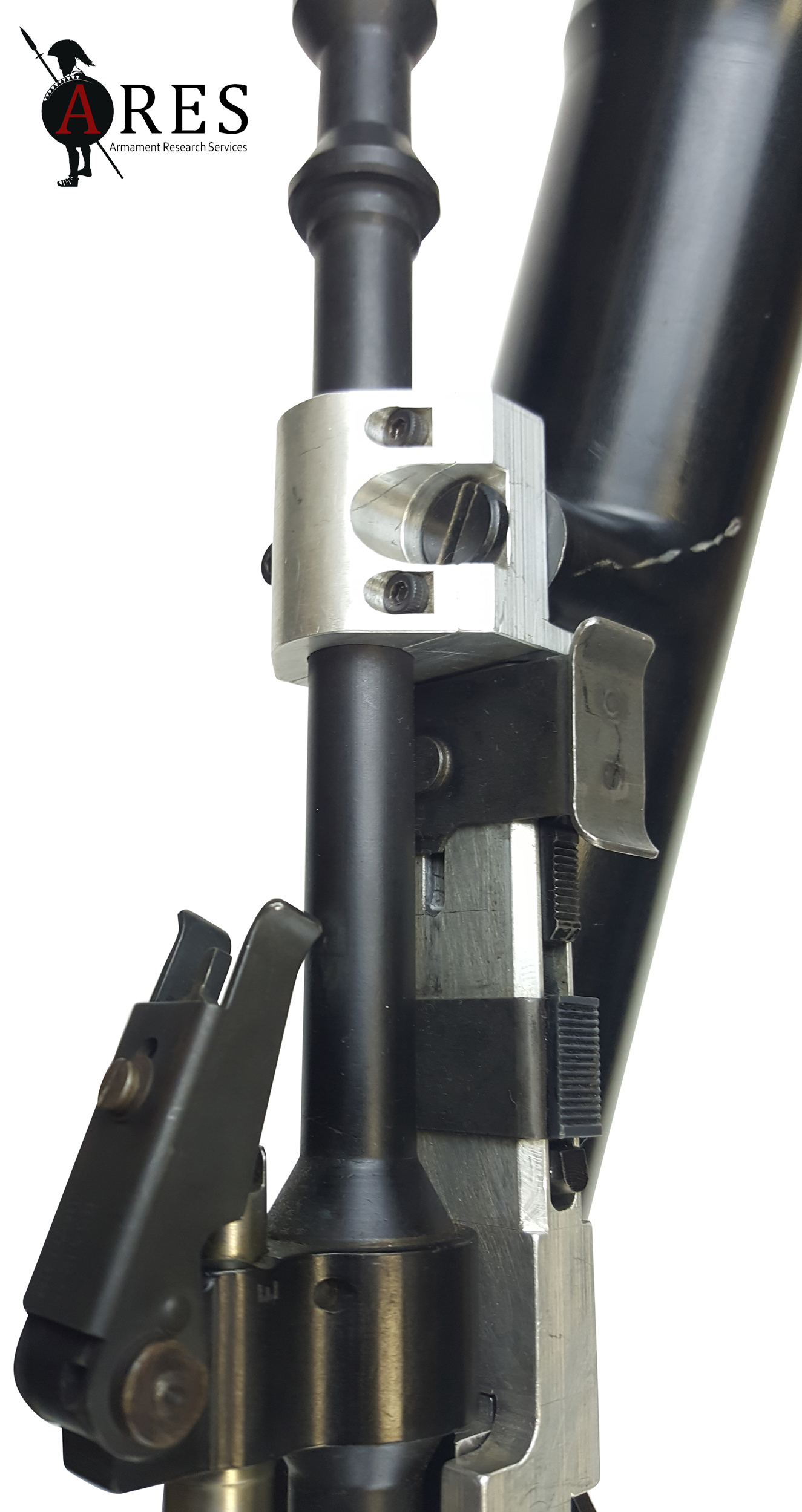 The second was the HG40, produced by the Hilton Gun Company, a small, now-defunct British firm based in Derbyshire. A two-piece bracket arrangement clamps over the barrel behind the grenade launching ring on the host rifle’s flash-suppressor. Much like the HK79, the HG40 employs a drop-breech system. The trigger mechanism for the grenade launcher sits almost directly below that of the host weapon. Little else is known about the weapon. The 1991 edition of Jane’s Infantry Weapons gives the statistics below, and indicates that the HG40 was undergoing UK military trials at the time of publication.